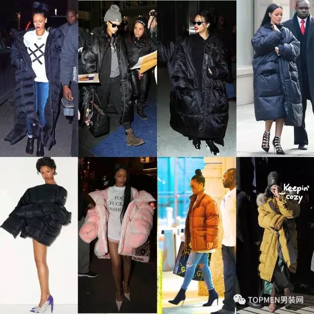 至于为什么要叫RIRI“羽绒服女神”,原因很简单,因为无论春夏秋冬,没有谁比她更爱用羽绒服凹造型的了,而且通通都要采取铺盖式的穿法。