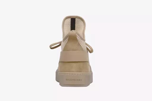 奢侈品牌借鉴运动品牌的设计已经不是什么新鲜事了,作为发过巴黎的奢侈品牌 巴黎世家 推出了最新弹性高帮运动鞋,融入了流行的针织网眼设计,鞋面上采用了弹性绑带,并用一块真皮包裹鞋身和后跟的支撑块,而中底通过不同色彩和材质的拼接,形成了从鞋身绑带和支撑块延伸的视觉效果,另外还在后跟处拼接了一块麂皮,内靴和鞋垫也均为小牛皮,展示了一款奢侈品运动鞋应有的基本素养。