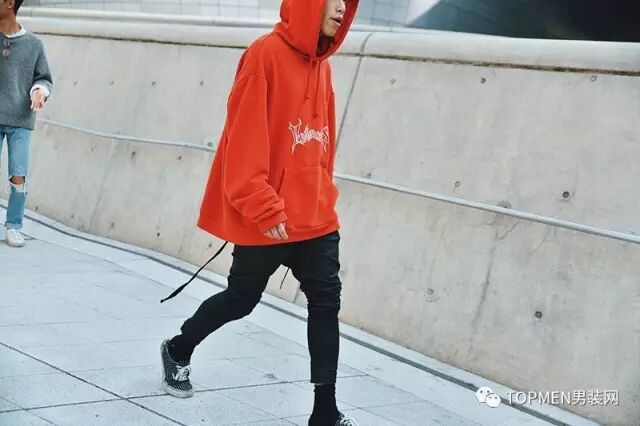 卫衣的道理也是一样的,而且因为卫衣本身的样式不是属于那种风格特别犀利的,所以用上红色也不会觉得夸张。搭配上只要随便配条黑裤子就会好看。