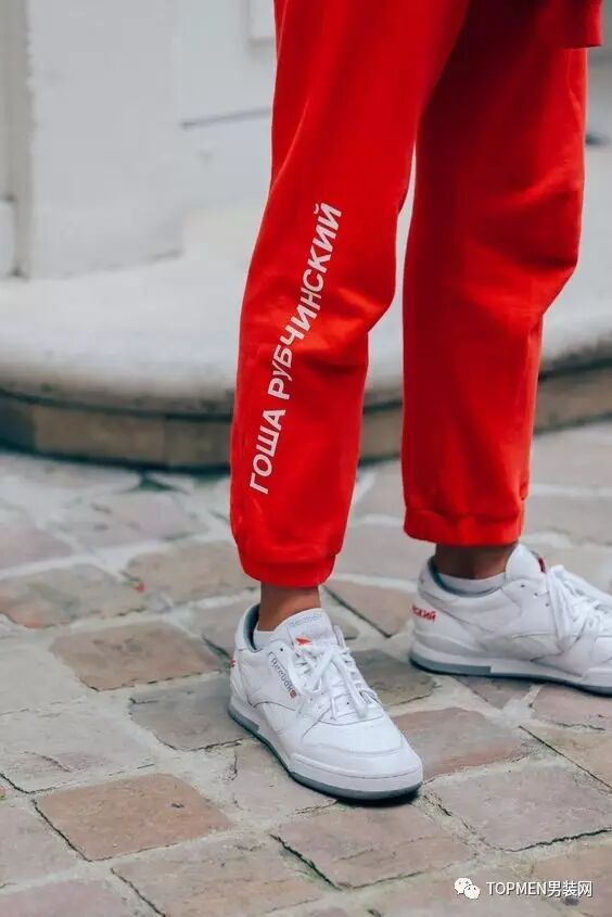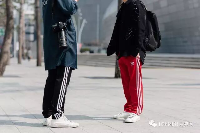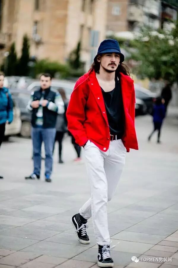 而裤子的话个人是不太建议红色的,如果你真的喜欢那么我也建议你选择红色的卫裤,至少风格上反差不会很大。