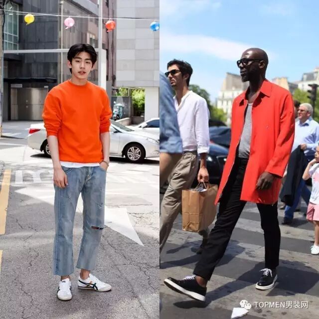 另外,比红色再亮一点的橘色同样也很喜庆,而且比红色更有活力,更显年轻,所以潮人小伙们除了红色也可以试试更有趣的橘色。