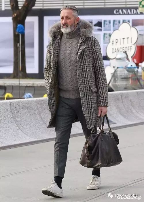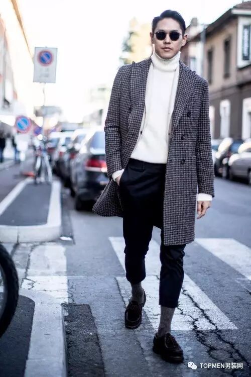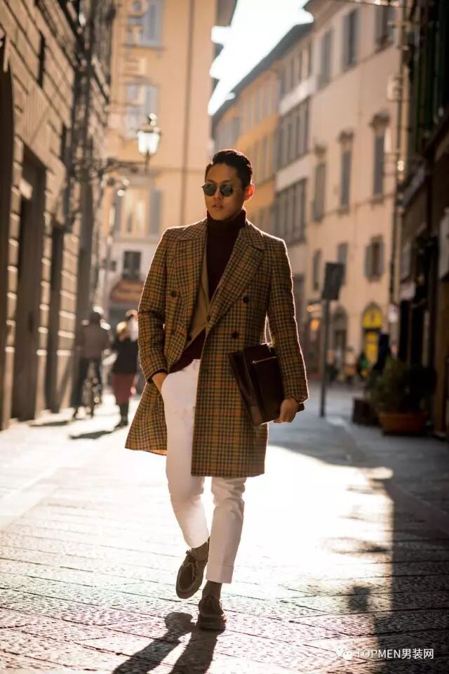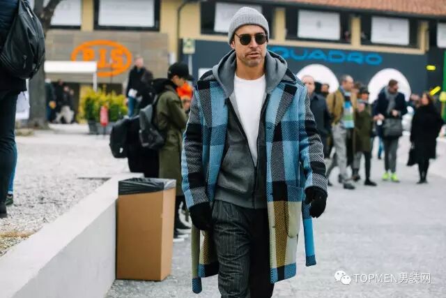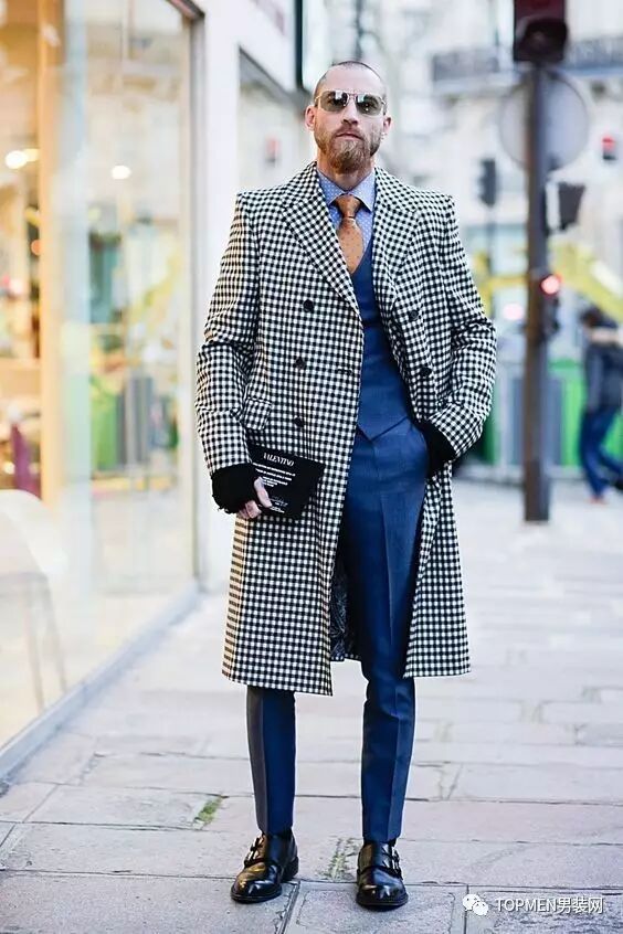 格纹大衣是今年时装周街拍上出现最多的格纹单品之一,从成熟的潮大叔到时髦的潮少年都很偏爱它。格纹上,熟男选择建议小方格、千鸟格或是威尔士格,色彩选择黑白配色、灰色或者大地色系。不仅质感够够的,款式也不会过时,可以入手一件稍贵的。