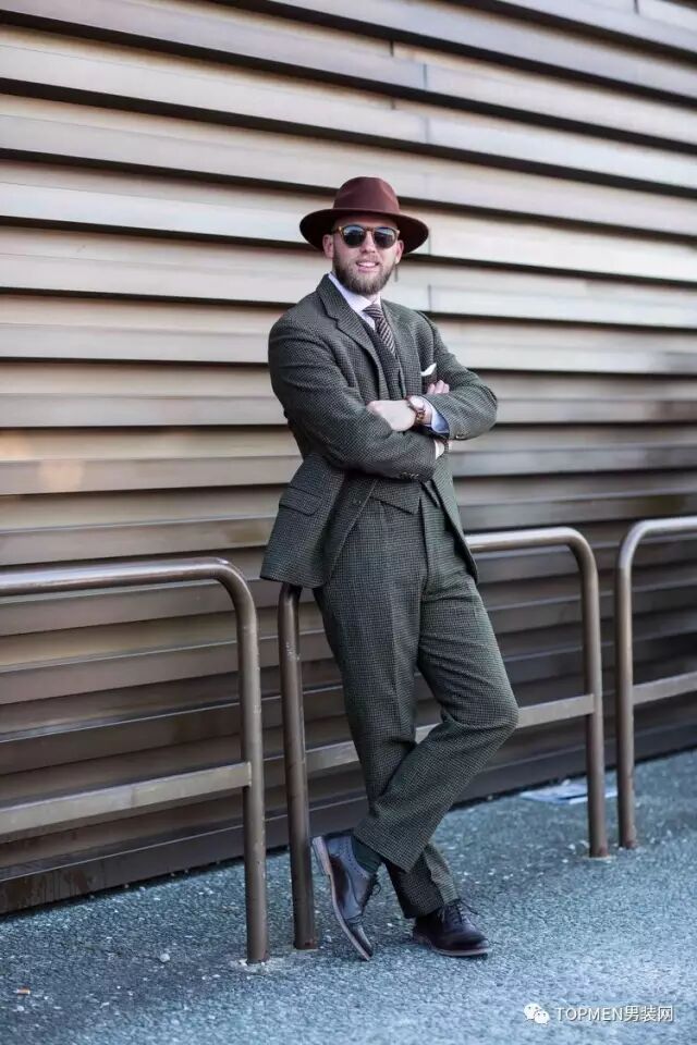格纹西装只要分三种风格,一个是复古类的,格纹款式上限制不大,但是多为呢料且色彩复古,以大地色或者深绿色系为主,比较适合风格成熟的男士。