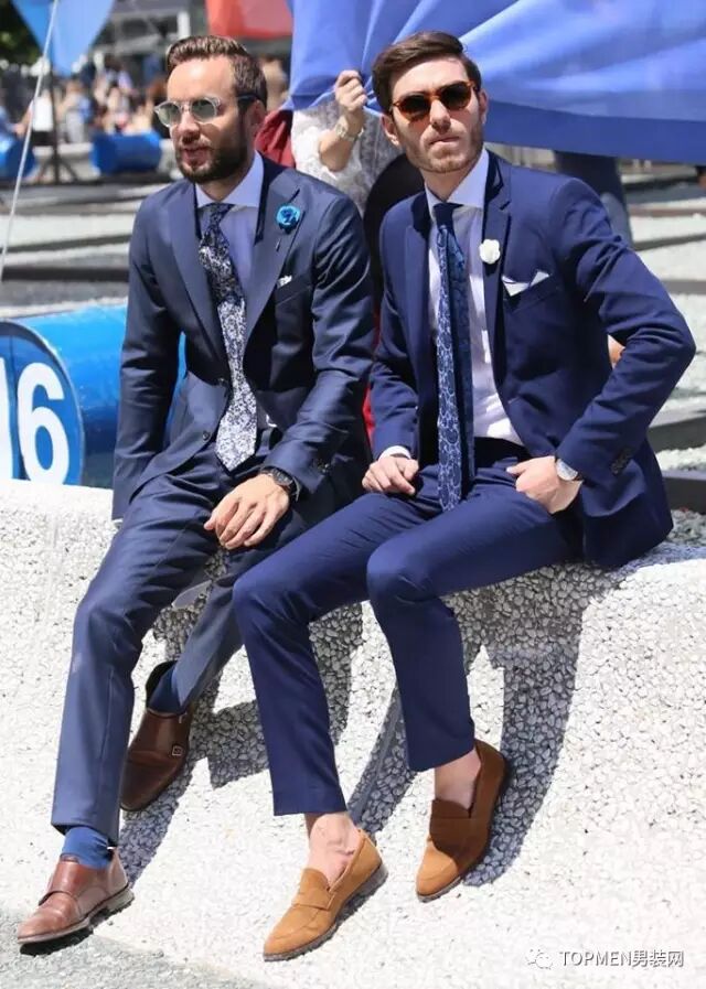 所以亮色调的海军蓝西装更适合年轻男士,套西 sneakers或者T恤其中一个元素就能凸显你的青春。
