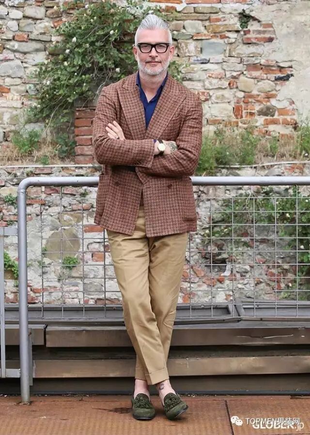 卡其色西装其实是生活中穿的人比较多的,风格比较休闲大众,多以单穿西装夹克出现。