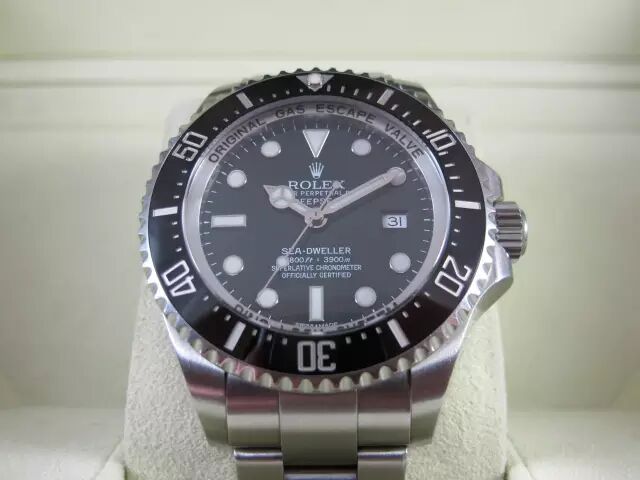 劳力士的 Deepsea 系列是和专业潜水员数十年合作的成果,属于超凡工艺的顶级潜水表,独树一帜的腕表表盘,钟点标记采用18ct金制成,易于识别读时,而大部分工艺都是采用手工制作,力求完美。