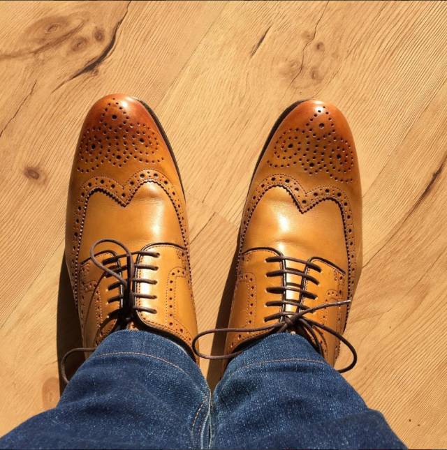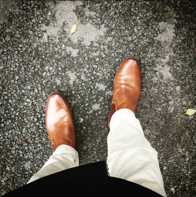 装饰的牛津鞋适合半正式以及便装,而博主晒出的牛津鞋是全布洛克花纹装饰的,所以这类鞋子适合商务休闲的风格。切尔西靴子最初也被称为“终极休闲鞋”,不过也有很多人在正式场合选择搭配一双质地优良的切尔西,可以说在经典复古的同时也不会感到沉闷。切尔西真正流传开来是因为披头士乐队在登台表演的都穿着这种靴子,配上西装,所以也有人把切尔西靴称作“披头士靴”。