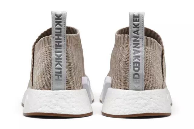 adidas Consortium 在2017 年重磅企划中,邀请来纽约街头品牌 KITH 和 哥本哈根的球鞋店铺 NAKED 进行合作企划,推出了这双最新鞋型 NMD CS2 。作为 NMD City Sock 的第二代鞋款,CS2 延续了无鞋带袜式轮廓,外侧鞋筒则采用了折叠式的不对称设计。CS2 的 Primeknit 鞋身分别以沙色和粉色呈现,中部以带有三线标志的条纹穿过,Ronnie Fieg 和 KITH 的 Logo 以及 NAKED 的标志各自点缀于鞋舌和后跟皮革拉环,并置于省去了外侧前后稳定块的白色和鞋带BOOST 中底之上。