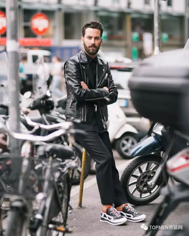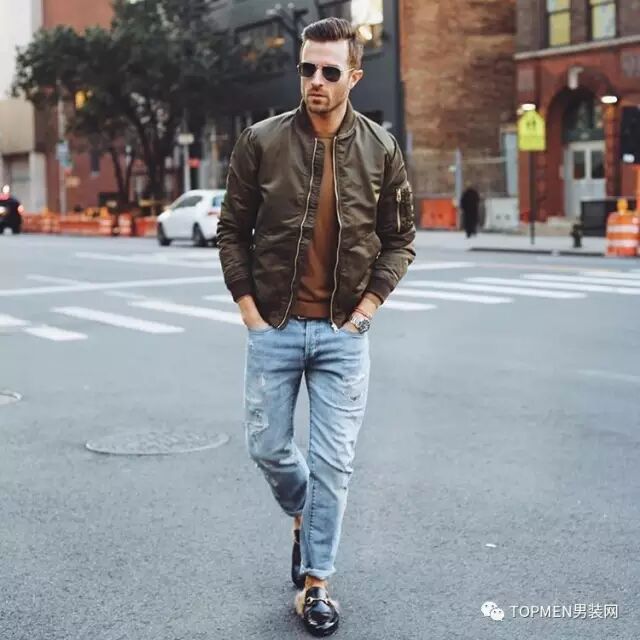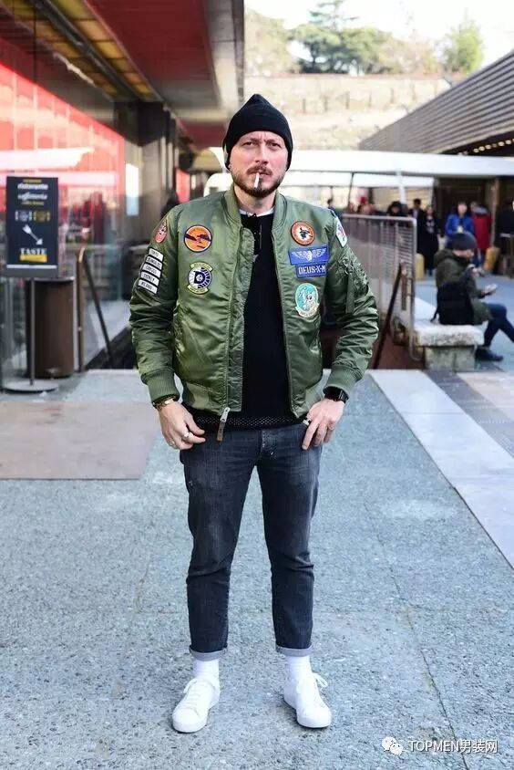 特别是皮夹克和bomber夹克这种本身在肩部就有加强的单品,会让你看上去更有气势。