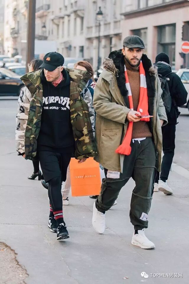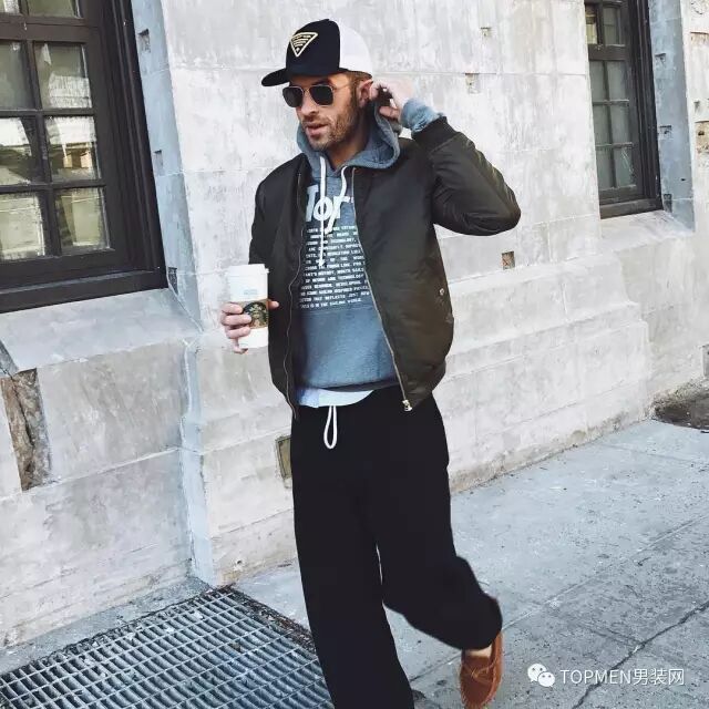 年轻的潮男们也可以从用帽衫搭外套开始。