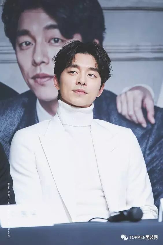 像孔刘在《鬼怪》中的造型就多次出现了白色高领毛衣。