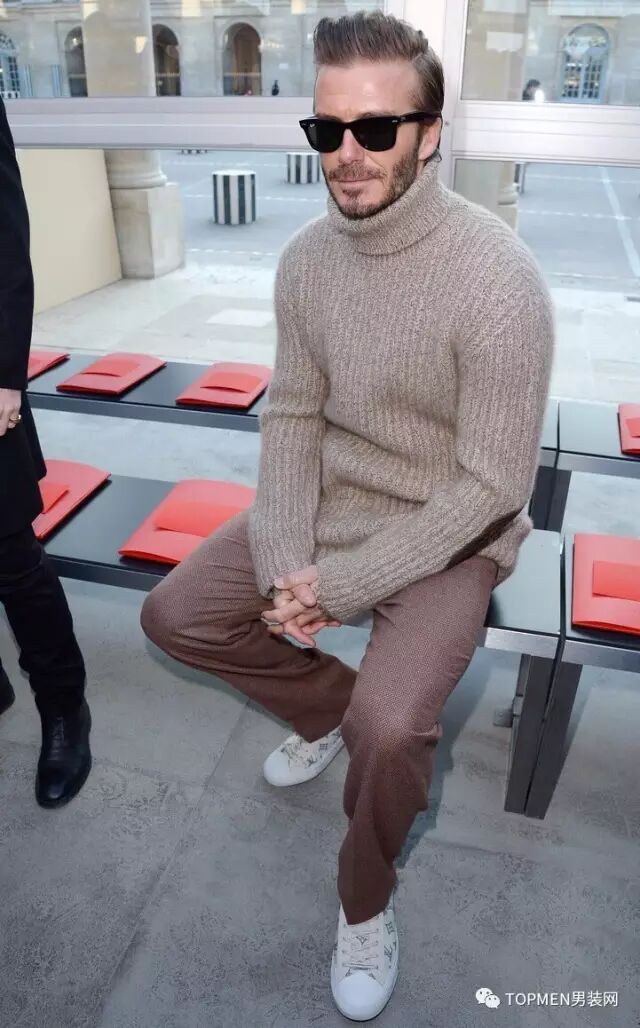 和白色毛衣有同样效果的还有比它再温暖一些的米色或者驼色的毛衣,相比起来没有白色那么挑人,而且给人感觉更稳重,熟男也都可以试试看。