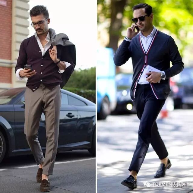 风格偏商务的男士那就可以选择细针织的开衫搭配白衬衫,会比严肃的西装看上去更有温度。