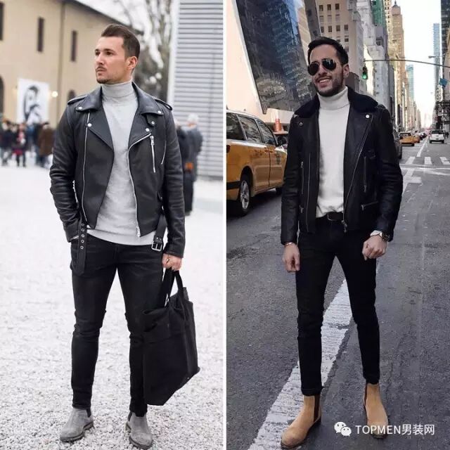 配上硬朗风皮夹克的时候还能把熟男的儒雅气质展现出来,给了他们更多的着装选择。
