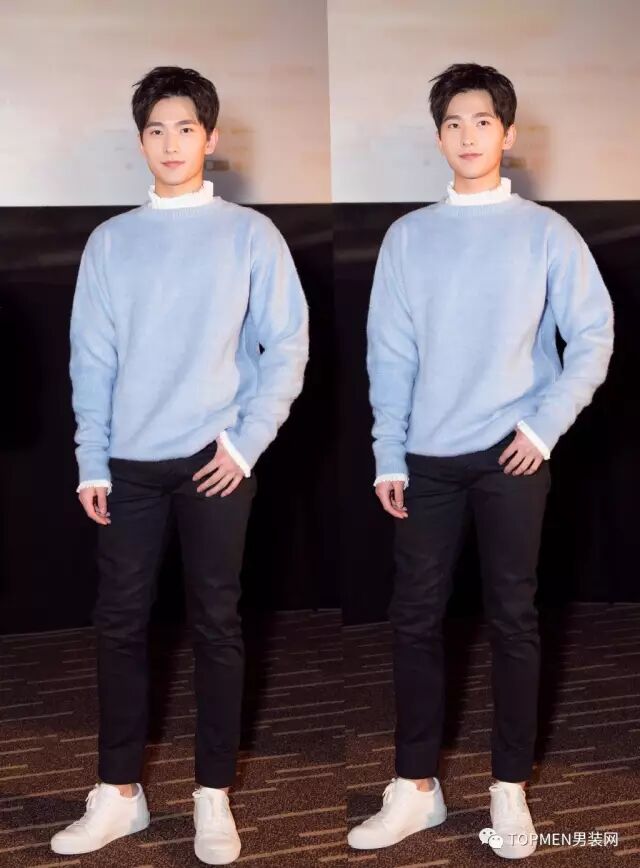 而下面杨洋选择的这件比较嫩的burberry的粉蓝色毛衣就比较挑人了,适合长相清秀的男生,配色加入白色很适合春日的阳光。