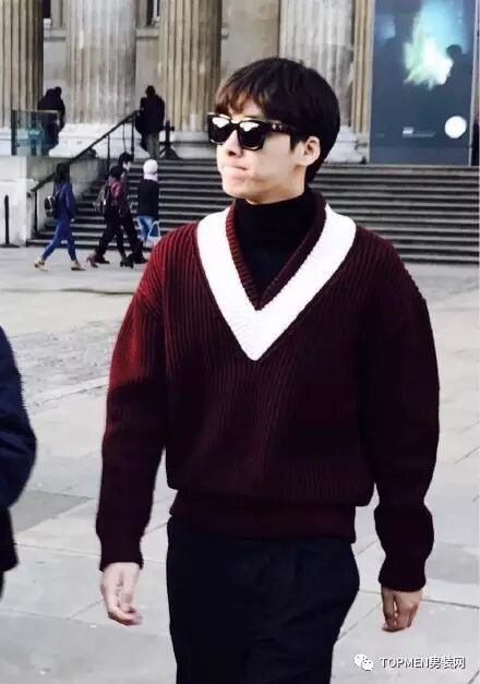 虽然偶像剧中男主或者明星的穿搭总被大家称作暖男示范,但是有的单品却不适合一般人穿。比如上面说到的V领毛衣,即使它现在很火,但是不小心可能就穿成了老气的款式。像下面这件孔刘、吴亦凡、李易峰都穿过的burberry的酒红色V领毛衣其实就不好穿,对颜值和气质都有要求。