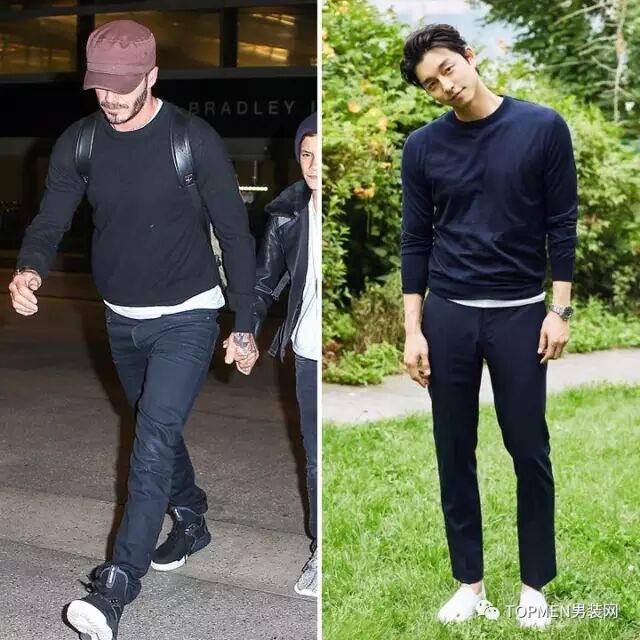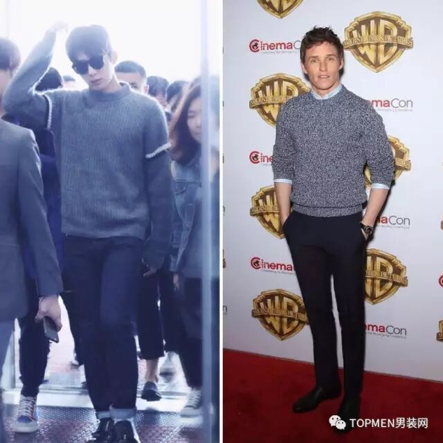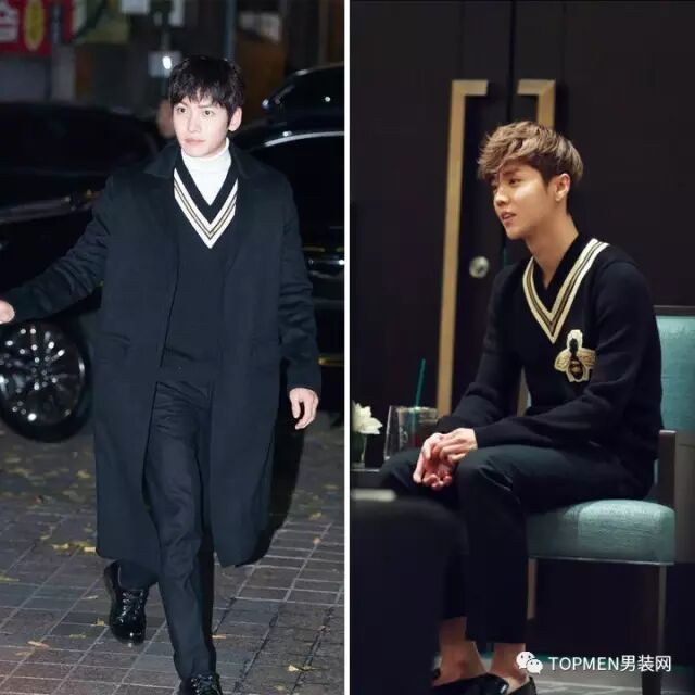 相对来说下面李易峰和南柱赫穿的这两件色彩更简单清新,比较偏学院系,倒是可以借鉴一下,搭配同样学院风的浅色水洗牛仔裤好像还不错。