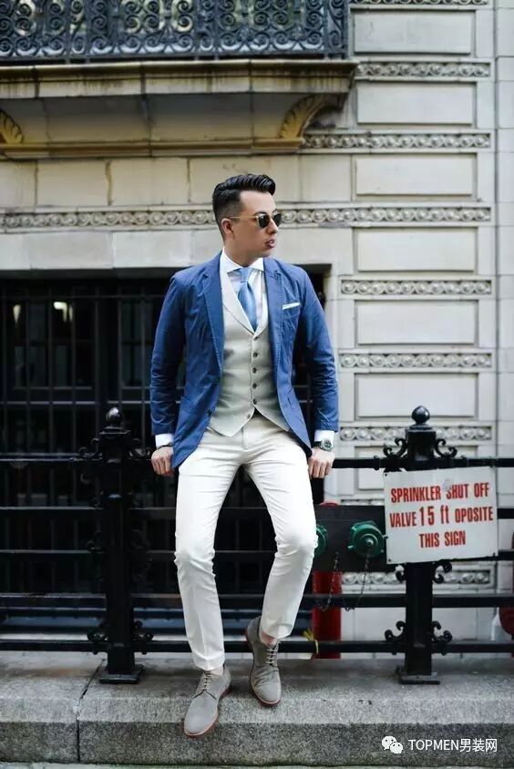 同时,这也时穿成蓝精灵最好看的时候之一,蓝色的西装并不是那种特别艳丽的颜色,但是却可以在看到的第一眼就把别人的目光吸过去。如果是比较轻盈的蓝色,其实不只是皮鞋,配上一双小白鞋更是让人移不开目光。