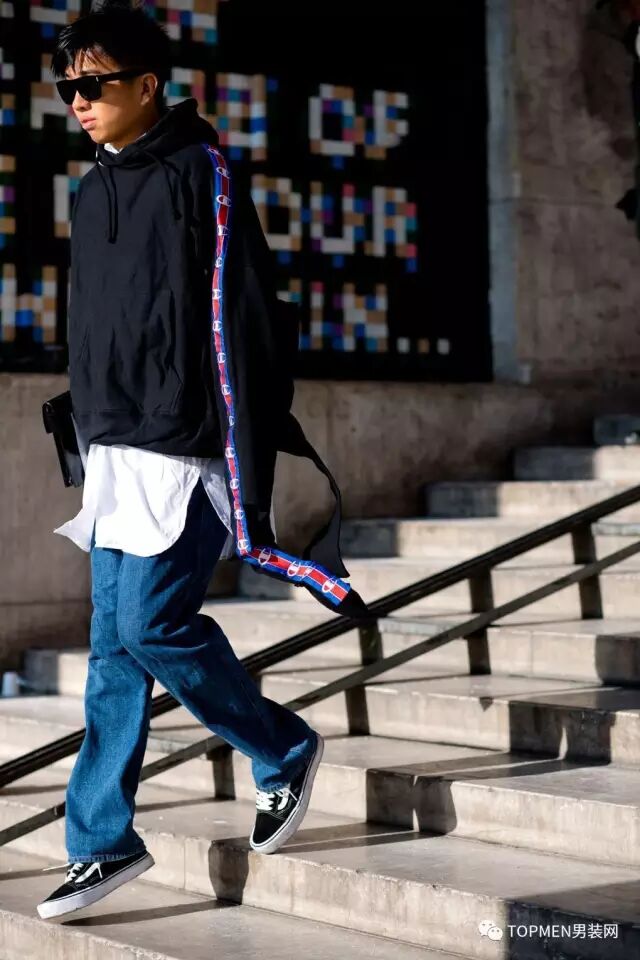 浅色水洗风格就明显偏休闲了,搭配白色肯定是没问题的。但是如果你想要让质感更突出,倒是可以试试搭配深色的单品,比如黑色卫衣。
