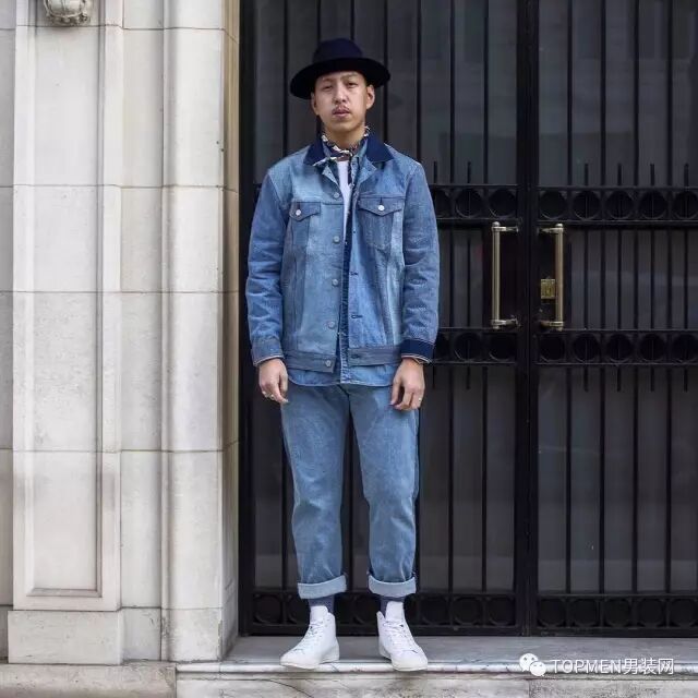 而且即使all denim ,你也是可以加入大量的白色,把色调提亮,有时候哪怕一双白鞋也会起大作用。