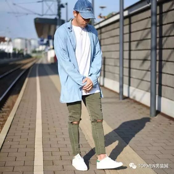 如果你更钟爱小清新,那就选择一件浅色的牛仔衬衫搭配白T就好啦。简单归简单,但好看是毋庸置疑的。