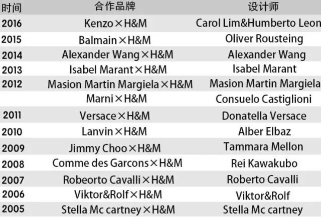 其实和H&M出过联名的才不只这三个,给一张名单你们感受一下,全都是时尚圈的大哥大姐来的。