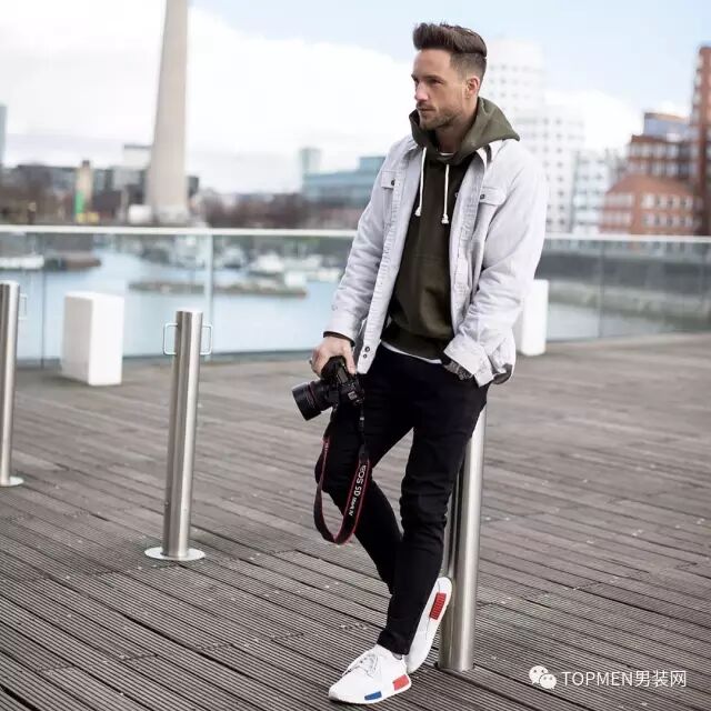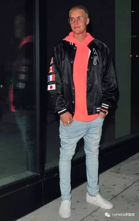 如果你还是属于闷骚内敛型的,那就在外面套上一件黑色外套就好了,这样不但低调不少,也不会遮住你帅气的光芒。