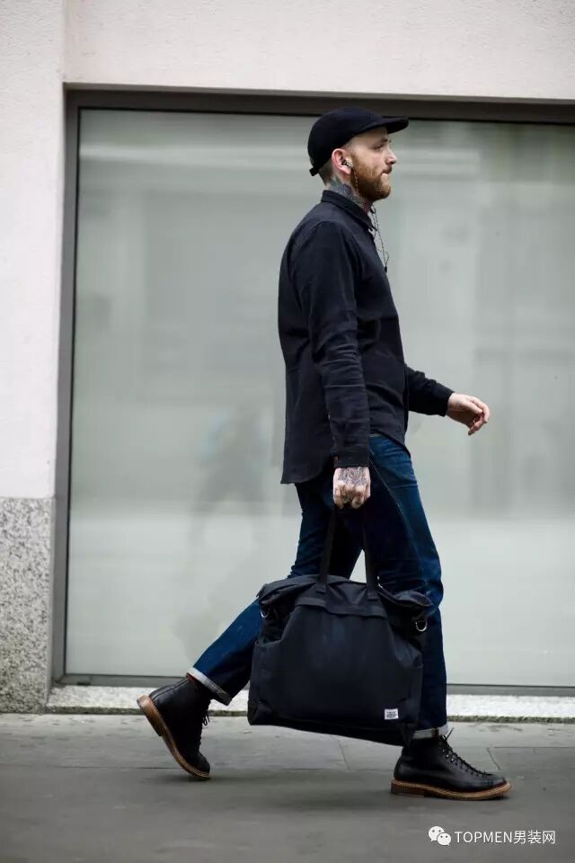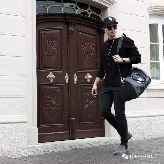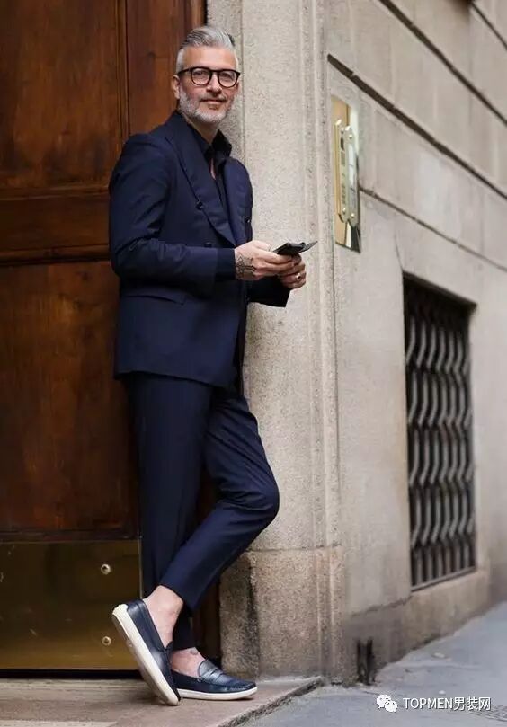 对于年纪稍大些的男士来说,可能就不喜欢身上有很多图案,那么你的all black就不用那么纯粹。部分的单品可以换成藏青色,这会让你看上去更柔和稳重。