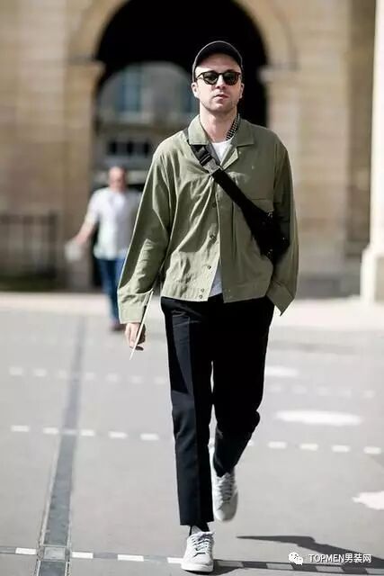 大多数时候,我更建议大家吧军绿色放在上装。想要男人味一点儿,一条黑裤子妥妥搞定。