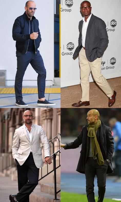 光头型男们在穿搭时尽量选择跟自己皮肤颜色接近的服装,当然也可以选择撞色的穿法,就是选择跟皮肤反差很大的颜色服饰。没有了头发,也就少了一种修饰作用,这时,如果你的五官不是非常立体的话,建议选择蓄起胡子,同样可以起到修饰的作用。还可以选择一副精致的眼镜或者镜架,也能秀修饰起你的面部轮廓,或者在冬季的时候,围巾是你不能错过的单品,可以为你的整体造型,加分不少。