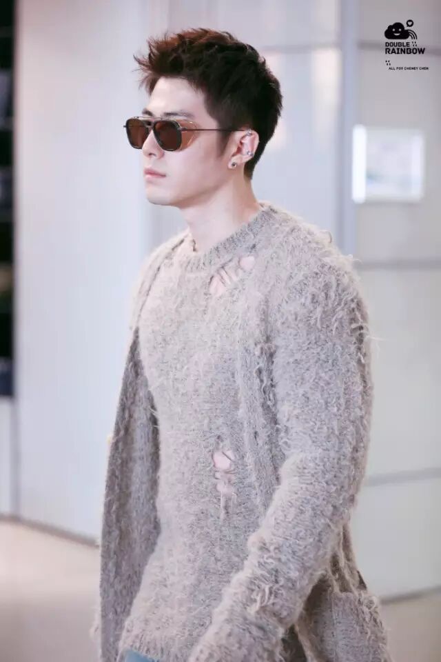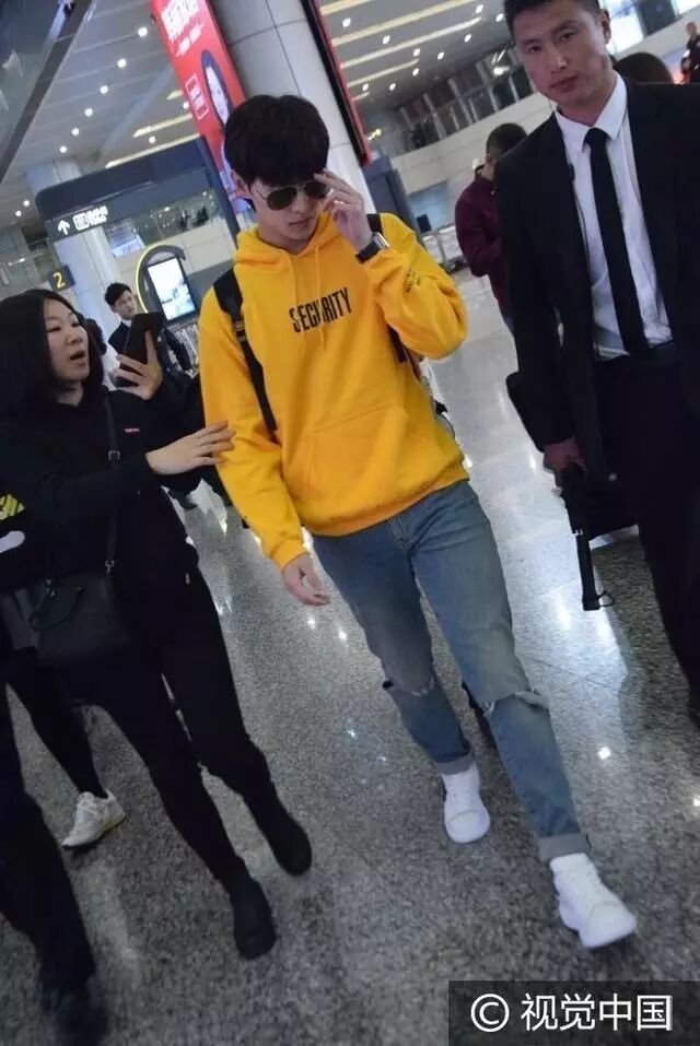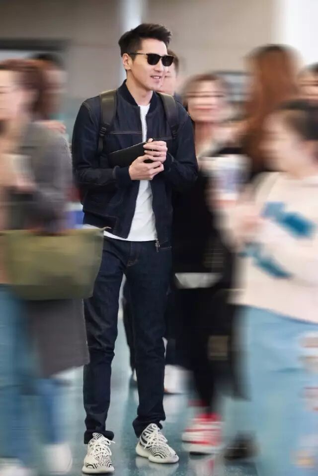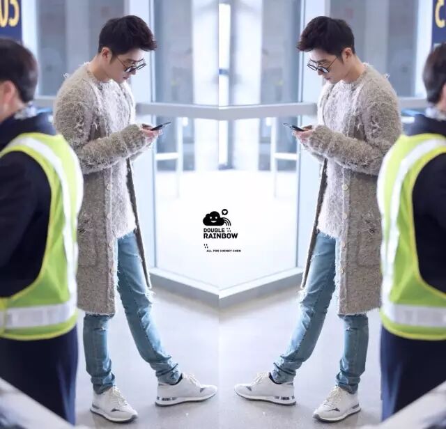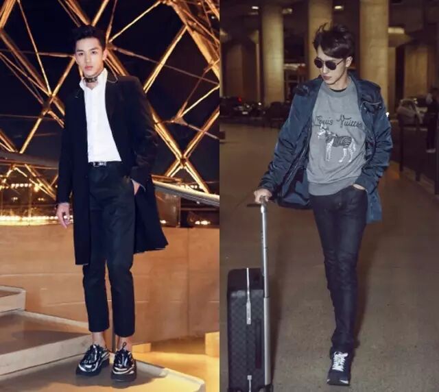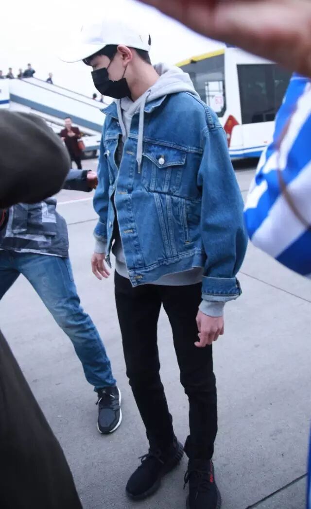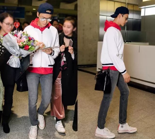 看秀前在机场的造型也不像很多明星那么夸张,简单得更像个学长。不过还是用到了chanel的包,说实话如果这不是他,其他人背不好没准会很娘。