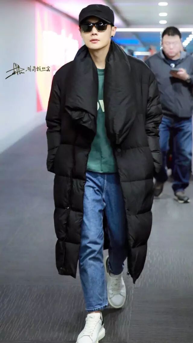 好像把李荣浩放在这边也说不过去,但放在小鲜肉那也怪怪的,好了,不纠结。这身造型说真的我是觉得挺看。内搭卫衣 九分牛仔裤 小白鞋没毛病,外面这件羽绒也挺霸气,来自他自己的品牌17steveneen。帽子的选择给人更加沉稳的感觉,所以在他的造型中你看不到过多的街头感,就感觉挺简单舒适,平常人也都能穿。