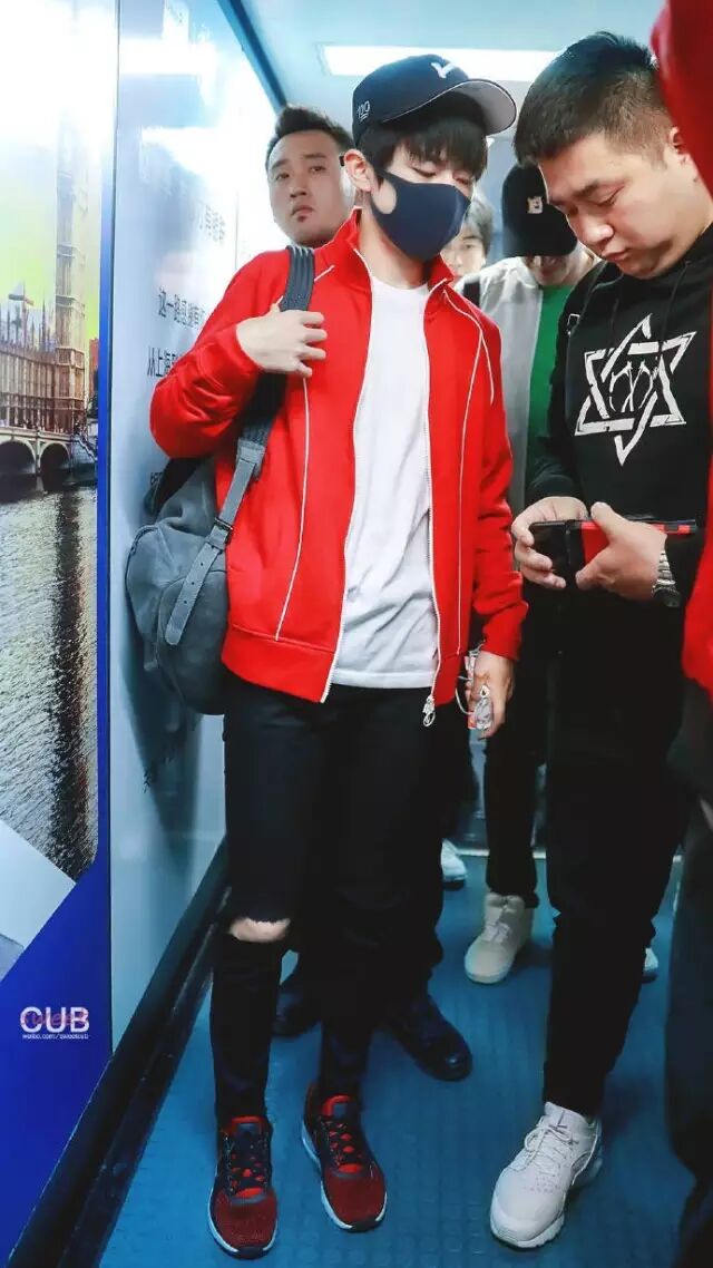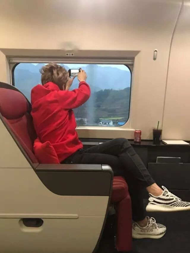 鹿晗这周坐高铁就选了一件大红的Supreme卫衣搭配黑牛和白斑马,够潮也够舒服,配上炸毛的发型刚刚好。
