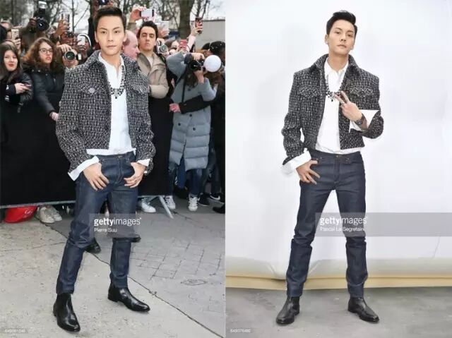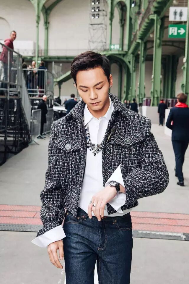 陈伟霆最近这一年和CHANEL的关系本身就不错,经常出席CHANEL的活动。这两天还宣布成为了CHANEL中国腕表形象大使,所以看秀也是肯定要的。因为本身平时私服的打扮就比较大胆,所以这次CHANEL标志性的粗花呢在他身上也驾驭得不错。搭配牛仔裤和皮鞋男人味不减。