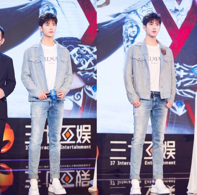 杨洋本身条件也是不错的,可是怎料又被P图师给坑了,下面是这周参加某代言游戏发布会的造型,本身来说牛仔白T加上小白鞋和杨洋清秀的五官是很和谐的,但是McQueen这双鞋虽然厚也不至于厚成这样吧,必定也是拉了腿的。