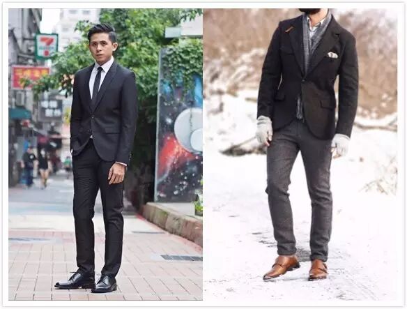 高挑的身材选择长窄鞋身皮鞋是最适合不过了,在商务西装或者外衣的衬托下,显得你更加优雅高挑,男人味十足。如果是正式场合,一席修身西装加上一双亮面长窄型的皮鞋,能让你更加充满迷人气息,魅力十足。