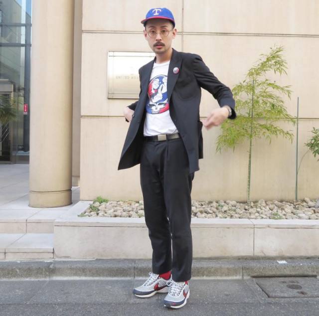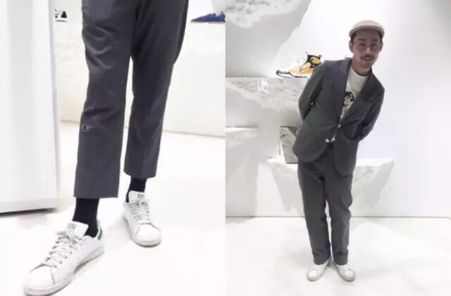 而成套的西装混搭街头强烈的单品和运动鞋,可谓是