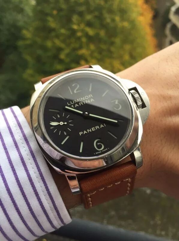 这款腕表在 沛纳海 中属于比较基础的款式设计,44毫米大表盘,加持了蓝宝石水晶镜面和牛皮表带,搭载着 Nivarox 游丝,Incabloc 避震技术,不过却是手动上链机芯。