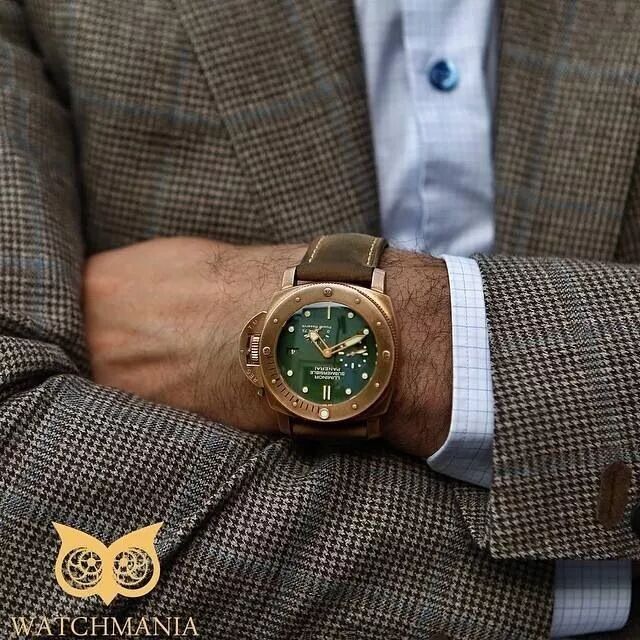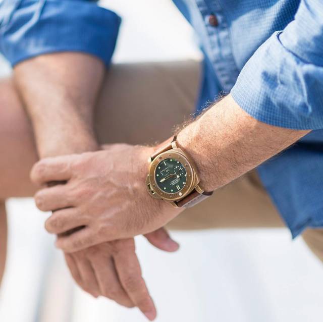 这款腕表算是 沛纳海 入门级中价格比较高的一款了,青铜材质的表壳,搭载着皮革表带,还有墨绿色的表盘,无论从哪个角度看,都让人越看越喜爱,要论复古感的话,绝对是极佳。