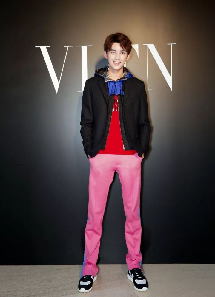 吴磊身穿Valentino 2018早春系列亮相上海恒隆广场VLTN限时概念店,西装混搭运动休闲鞋,青春洋溢少年感爆棚。