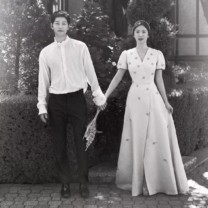 西装就不说了,让叶子觉得非常养眼的是这个造型,虽说雪纺衬衫又高贵又复古,但能穿得好看的还真没几个,宋仲基 穿着上身还真有几分仙气的感觉,特别是领口和袖口都有花边设计,跟 乔妹 一席质朴优雅的连衣裙站在一起,确实很般配。祝福他们!!!