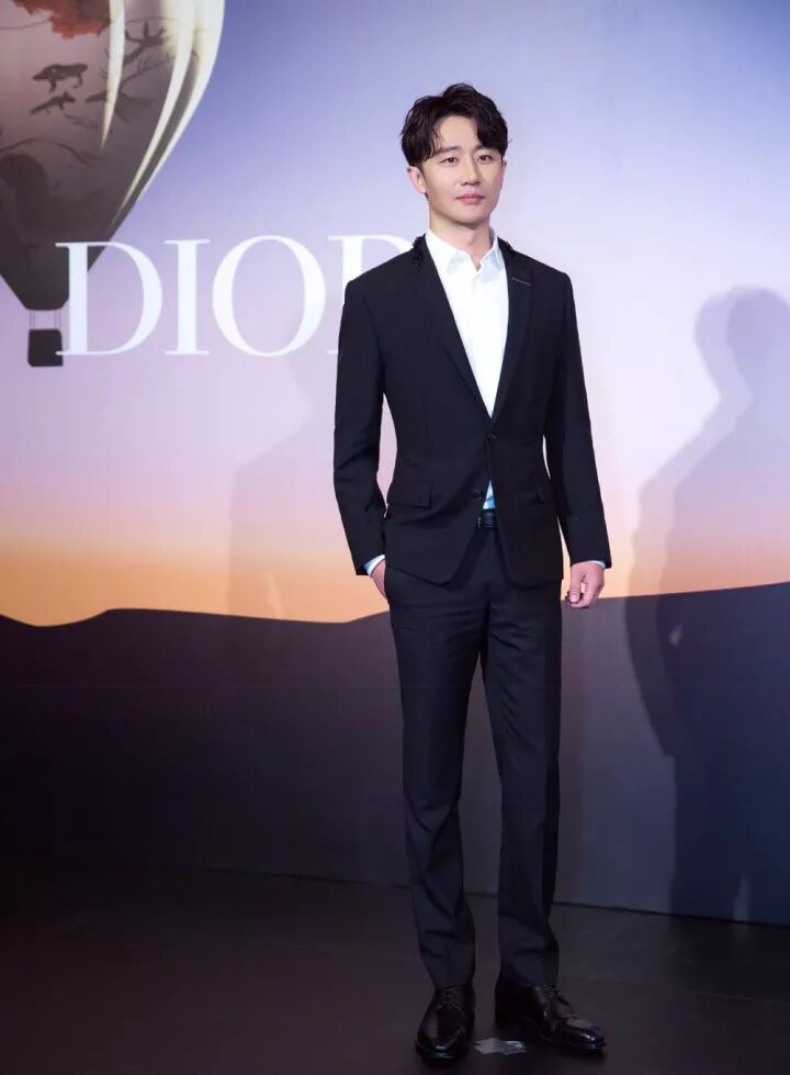 黄轩身穿Dior Homme 2018春季系列亮相上海恒隆广场全新中国旗舰店开业活动现场。经典黑色修身西装内搭白衬衫,再配上一双复古漆皮皮鞋,尽显都市摩登型男魅力。