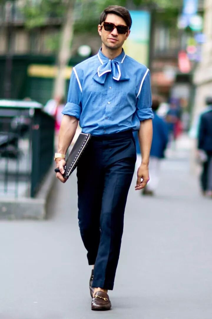 最经典的莫过于牛仔衬衫了,一直以来都是典型的工装代表,胸前两个口袋也是为了方便放置各种小物件。所以也有句戏言说,衬衫口袋越多表示你的劳动特征也明显,也代表着你的社会地位越低下。