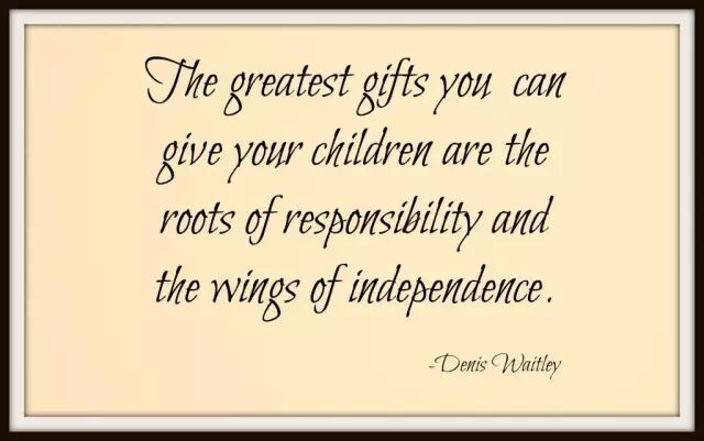 你能给你的孩子的最好的礼物,是负责的根基和独立的翅膀。——丹尼斯·威特利(美国心理咨询与管理专家)