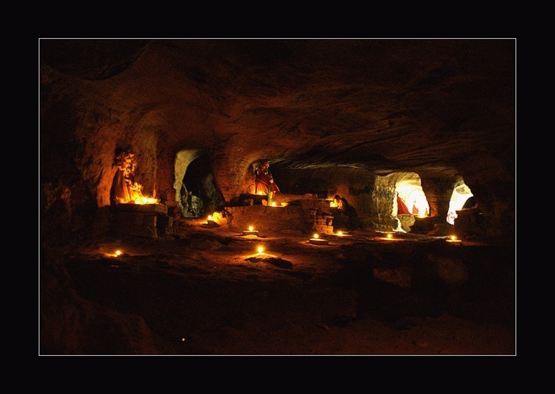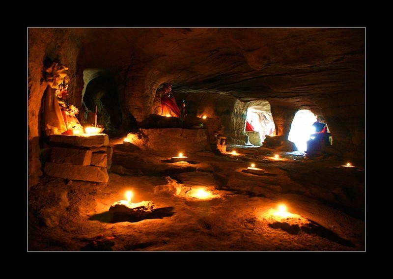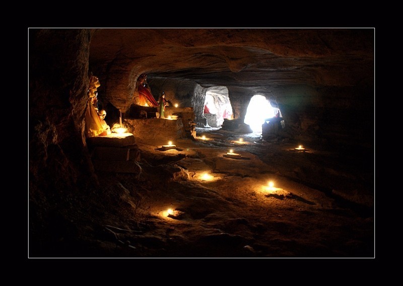 九莲洞是较为复杂的洞穴,有九位端坐莲花的菩萨,供香客烧香供奉。支洞到处都是,犹如进入迷宫。随便选洞口进去,绕来绕去又绕了回来。起伏多变,层层相连,洞洞相通,曲折迷离,步步是景。再选一个进去,便绕的不知哪是哪了。洞内各具特色,时宽时窄,宽阔处如大厅;狭窄处,只能容一人匍匐进入。洞内奇石千姿百态,美不胜收,目不暇接,蔚为壮观。