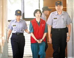 林于如(中)为诈领保险金犯下杀害丈夫、母亲、婆婆重案,图为2011年她聆听死刑判决后走出法庭,表情漠然。(资料照片)