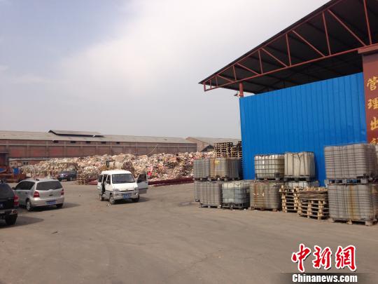 盛源造纸厂厂房与堆积如山的原料纸。 张鹏翔摄