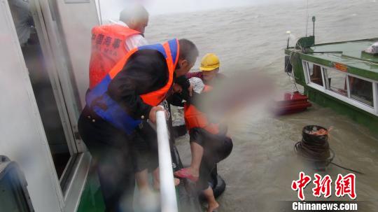 海事队员救助落水船员至搜救艇。 万挺 摄