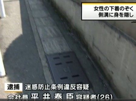 中新网6月7日电 据台湾东森电视台网站报道,日本兵库县神户市男子平井泰臣(26岁),因为躲在马路边的下水道偷窥女性裙底被捕,他落网后坦承犯行。