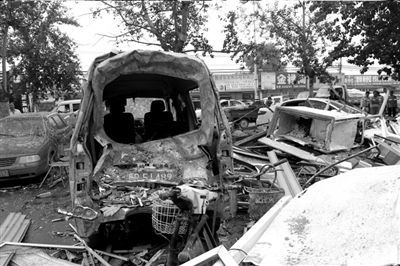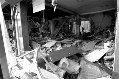 店内设施均被炸毁,场面一片狼藉。京华时报记者谭青摄/视频